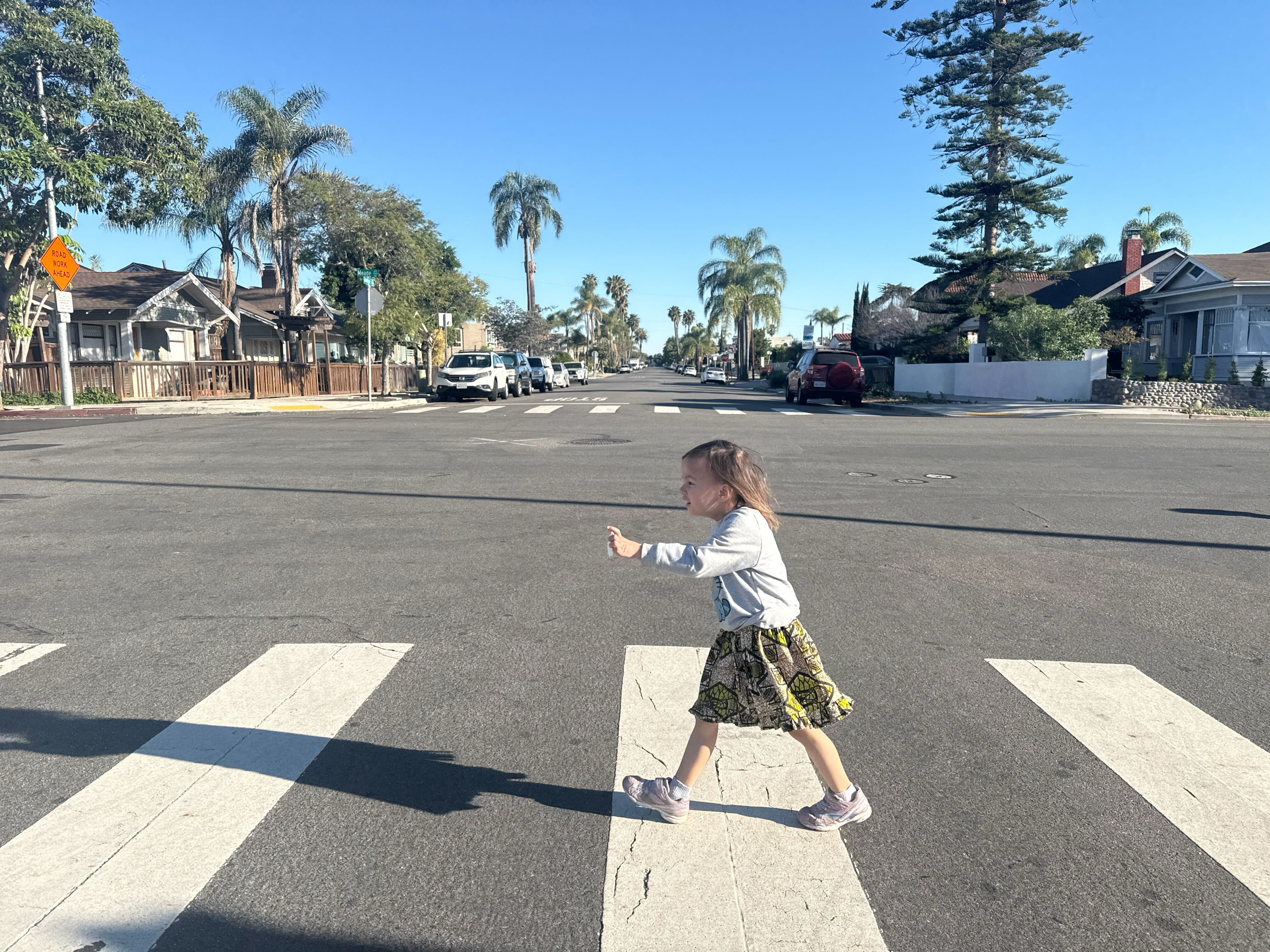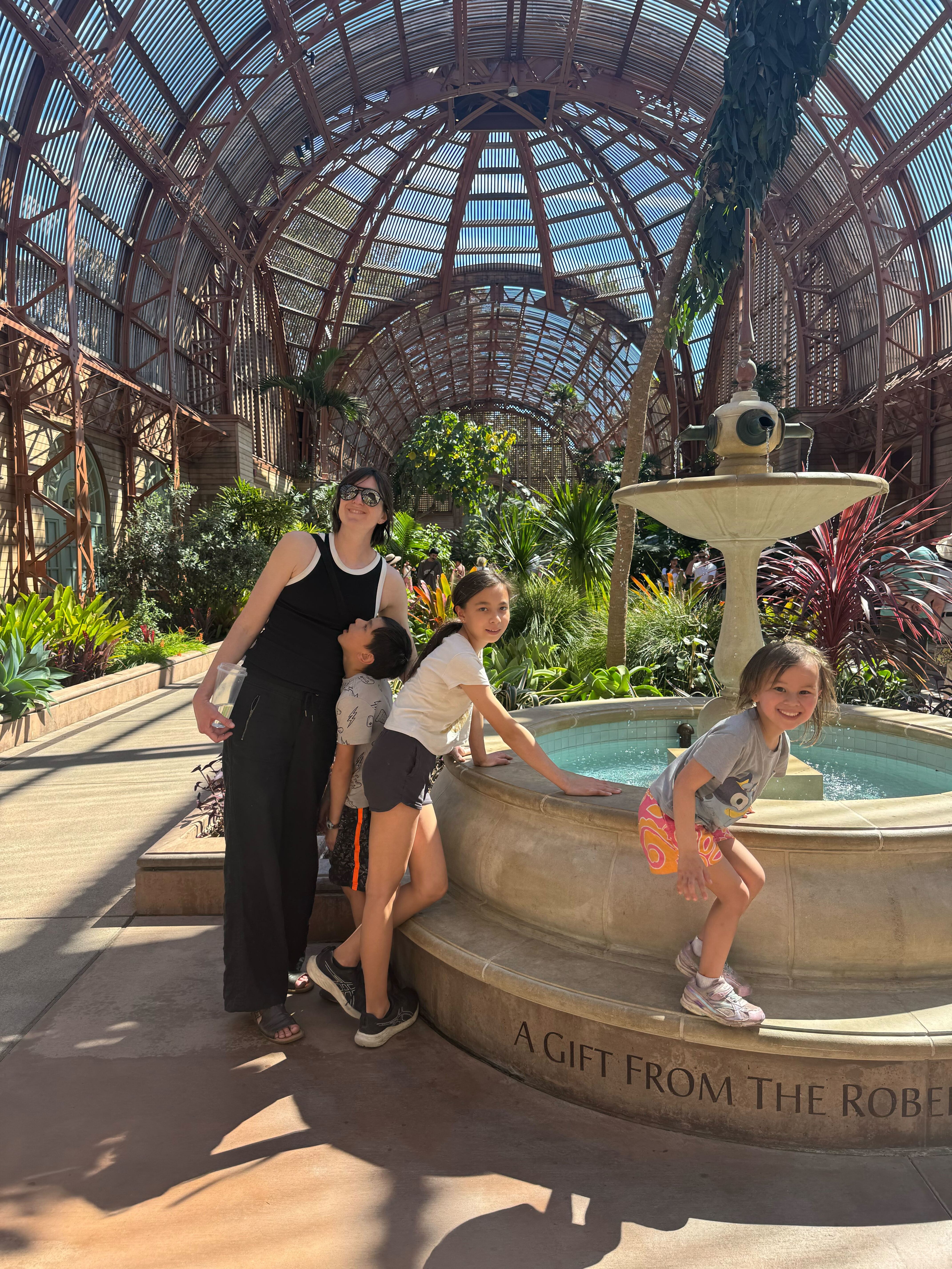 The kids really like walking around Balboa Park, it was so hot though. Even in March, the days were super sunny and at 80 degrees. Roz did not like walking through the park.