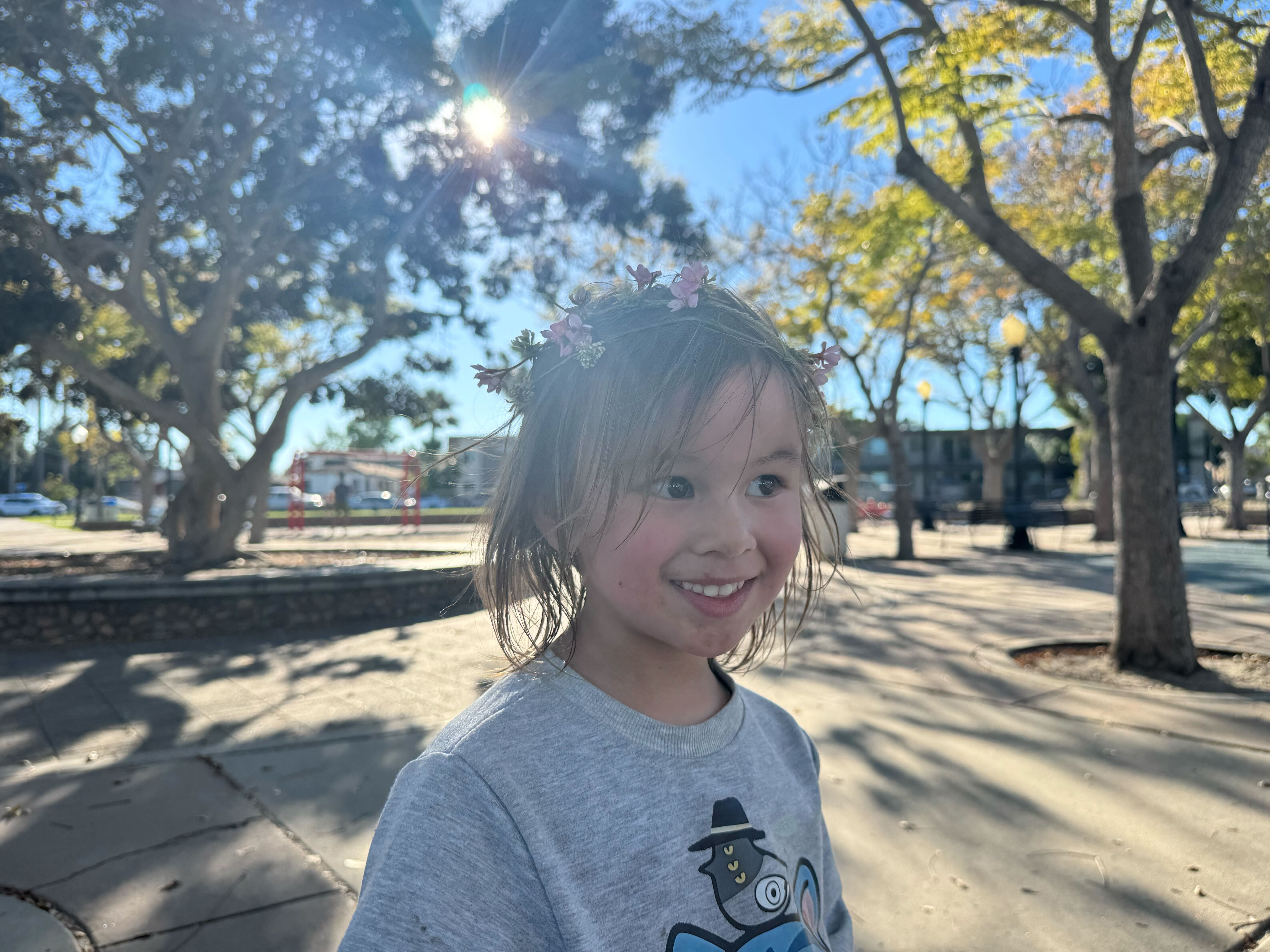 Roz really loved having a flower crown. This was just some random park enjoying some bubble tea.